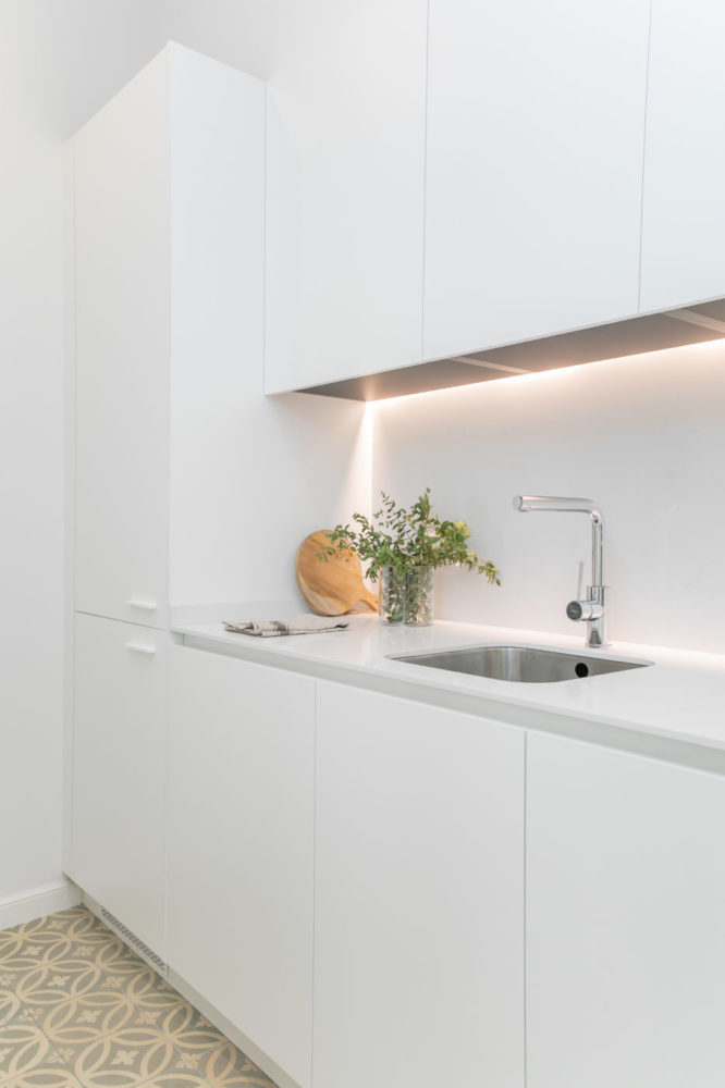 El mobiliario diseño de Alma rehabitat, con una estética moderna y funcional y los electrodomésticos todos integrados y de gama alta.