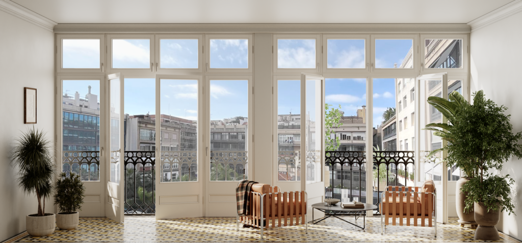 Situados en l’Eixample, a pasos del Mercado de Sant Antoni, estos hogares ofrecen amplitud, luminosidad y el encanto de una de las zonas más vibrantes de Barcelona.