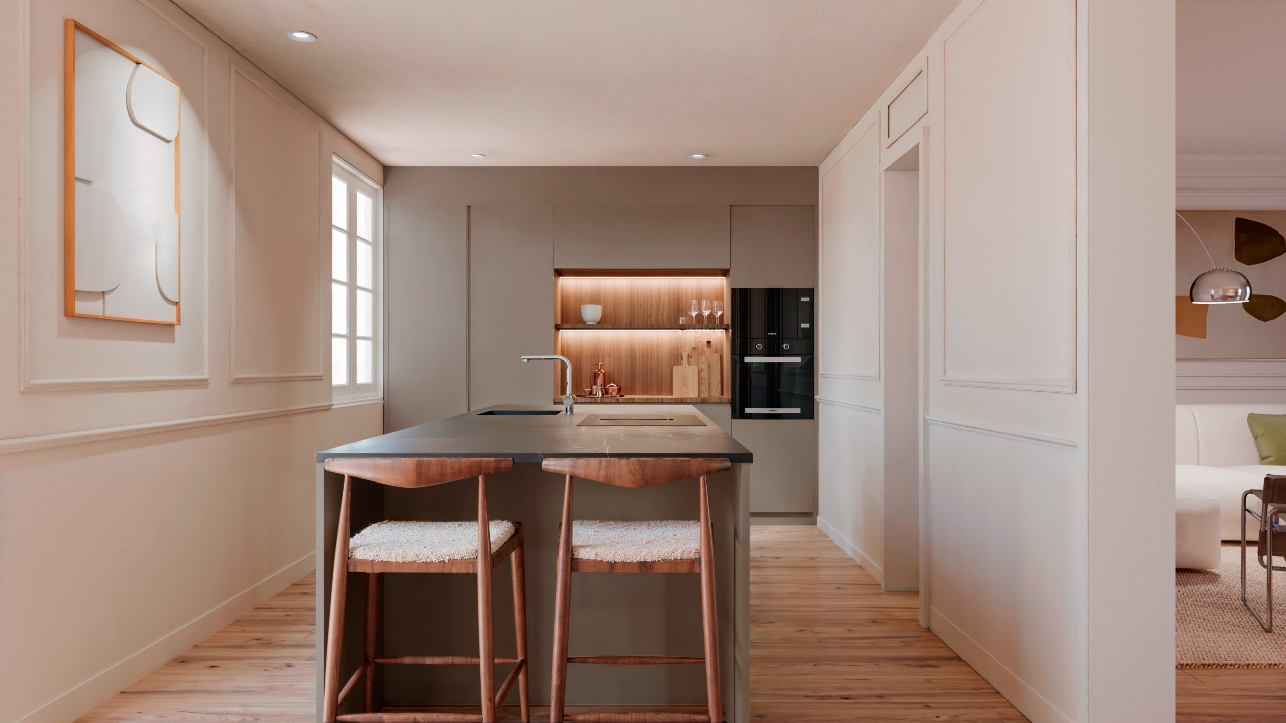 El privilegio de vivir en el QUADRAT D’OR de Barcelona, un enclave único en una vivienda rehabilitada que ha respetado y recuperado elementos originales que realzan su valor histórico.