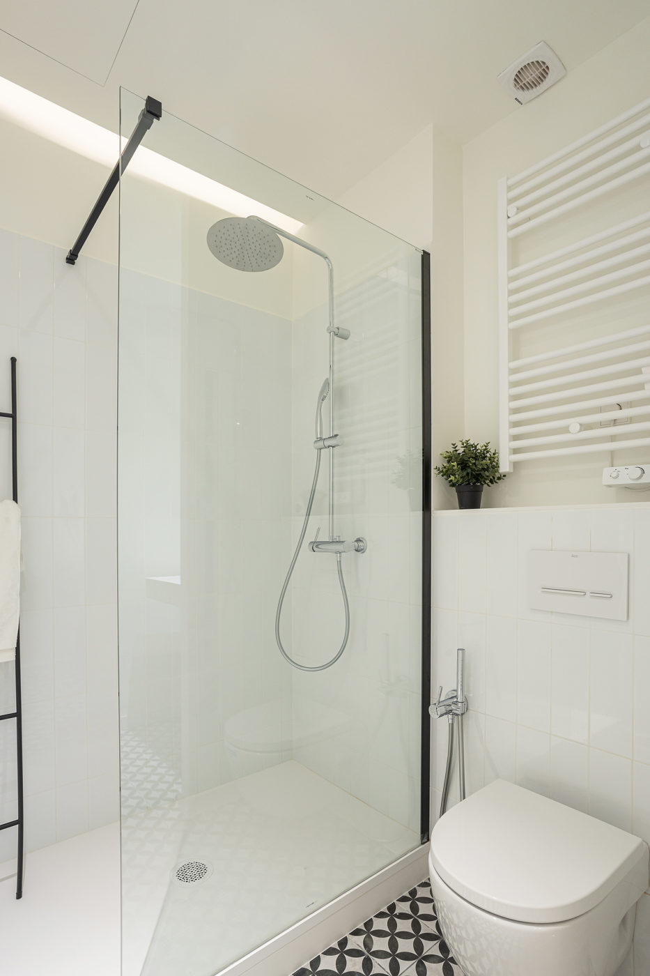 En la rehabilitación se ha conseguido un amplio espacio que engloba la entrada, con un luminoso salón-comedor con una cocina abierta y un balcon que da en frente de la Av. Gaudí. Consta de 3 habitaciones, las tres dobles de las cuales una cuenta con baño en suite y un armario empotrado. También dispone de zona de aguas independiente y un segundo baño completo.