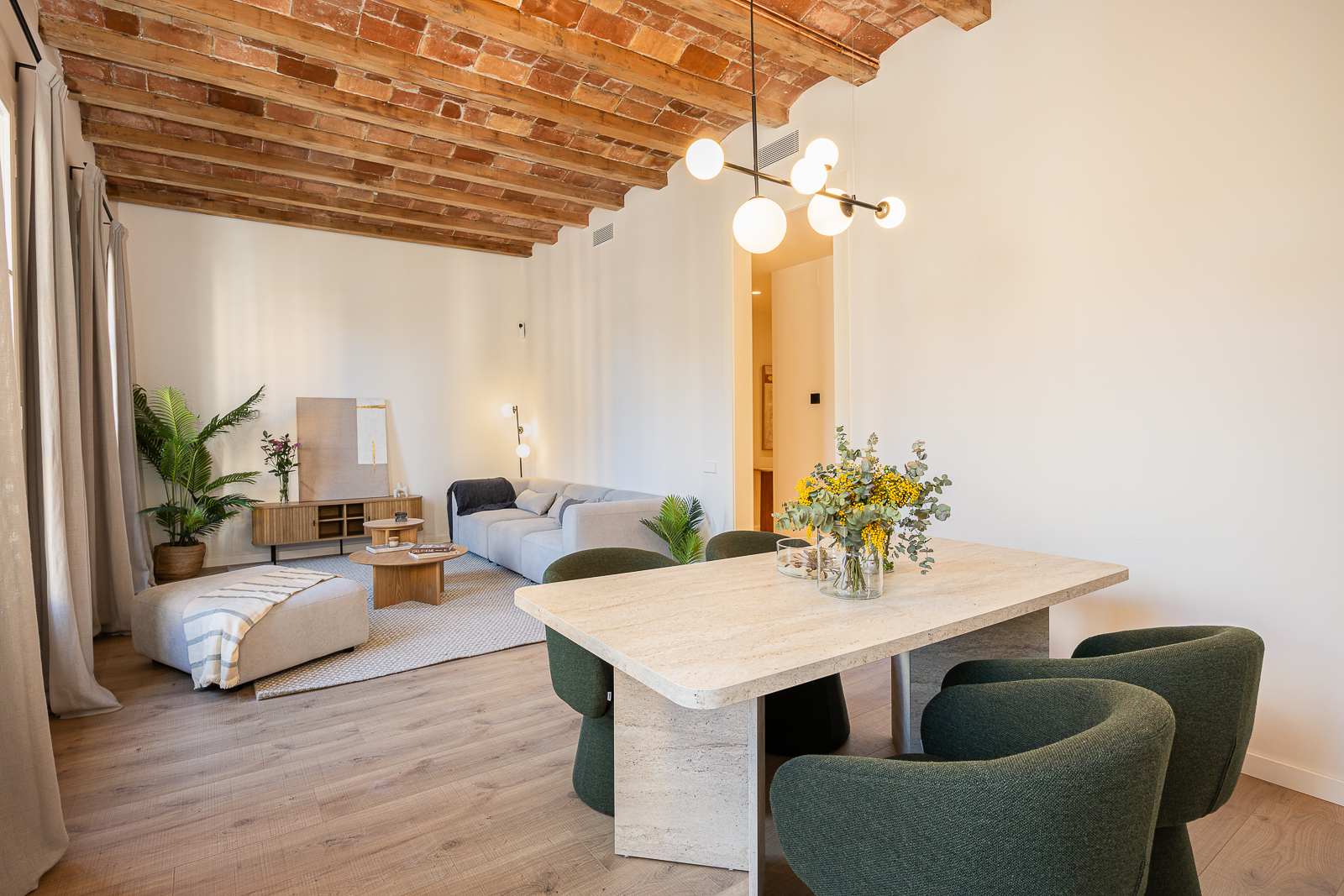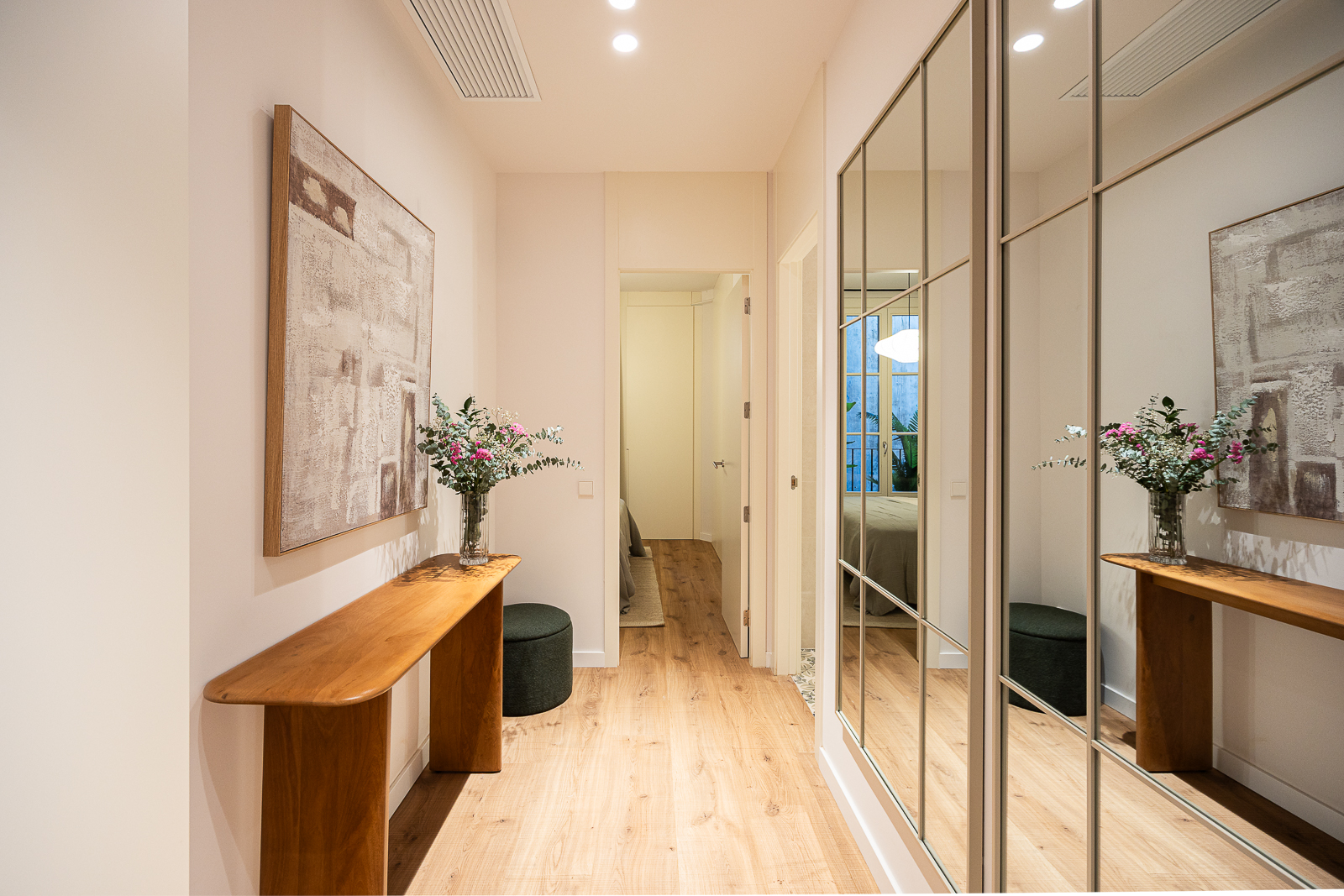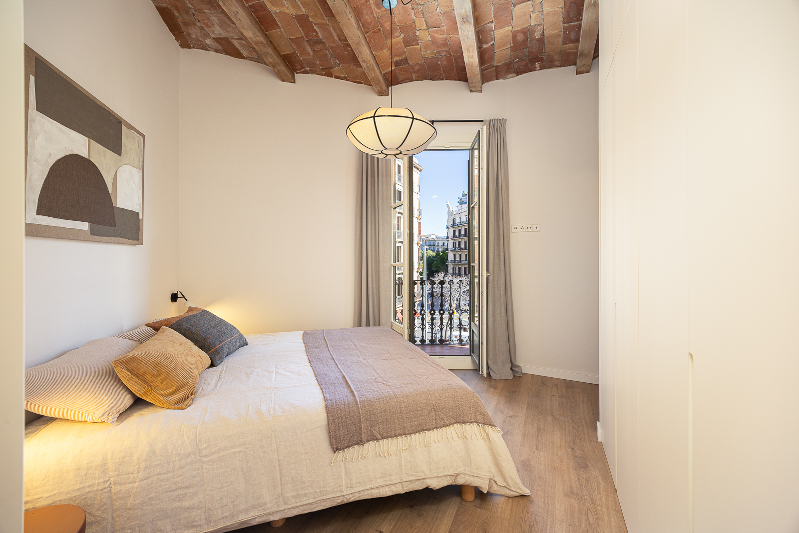 Espectacular piso de 90m², que cuenta con dos amplios dormitorios dobles con acceso a una terraza y un balcón, además de dos baños. Su diseño destaca por la amplitud y la abundante luz natural, creando un ambiente cálido y funcional. El salón-comedor, con balcones exteriores, permite disfrutar de una excelente iluminación y vistas a la icónica calle Aribau.