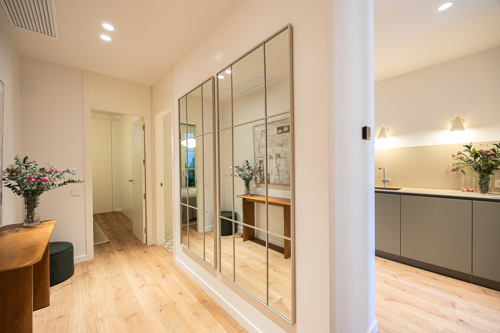 El proyecto Aribau combina comodidad y elegancia. Este piso cuenta con 2 dormitorios dobles con acceso a una terraza y aun balcón, dos baños completos (uno de ellos en suite) . El salón comedor es generoso en espacio y ofrece vistas impresionantes, perfecto para momentos de relajación y entretenimiento.